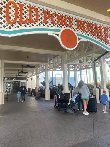 If you uber to this resort (which is what we did), you'll get dropped off at the resort's main hub which is called the Old Port Royale. Old Port Royale is where you'll find the main check-in desk area, gift shop, quick-service dining, and a grab and go service area. The hub had plenty of spaces to relax with comfortable couches and Caribbean island vibes.