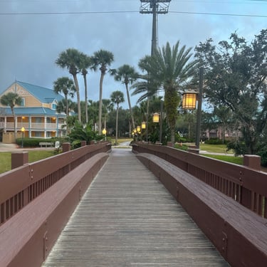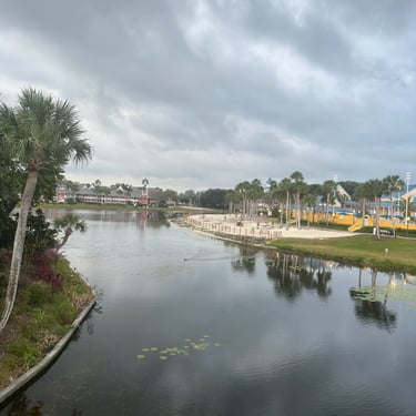 We explored the resort once we dropped of our luggage and organized our stuff - Caribbean Beach Resort is massive and it has multiple walking paths that take your through all the different areas. There are also multiple pools, beach areas, and fun areas to check out! We came across an area where they did movies under the stars which looked really fun. They also have spots you can watch the sunrise/sunset in little cabanas along the path in the middle of the resort. By the lighthouse, you can rent boats or they have fun yard games that you can play!