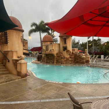 Caribbean Beach Resort does have a main pool that is really neat and has water slides that are actually really fun to go down. There's also a small hot tub that is hidden towards the back, but sadly it was down for maintenance while we were there. The resort also has smaller pools throughout the resort that tend to be quieter – like ours in Aruba was not far at all from our room. Additionally, there are beach chairs/hammocks along the beach areas for you to explore and relax in.
