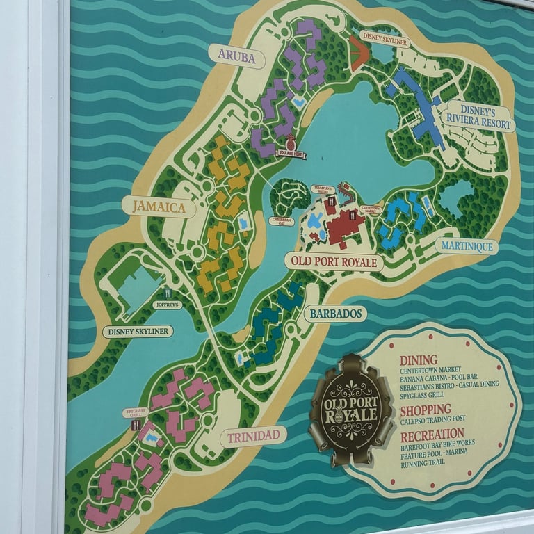 Pro Tip: If you check in with a cast member at the hub, you can request specific areas if there are any available if you did not booked a preferred room. For example, I asked to be put in the Aruba area since I knew that section of the resort was going to be closer to the Riviera resort & Riviera Skyliner station. Luckily, they had room in this area and we were very close to many of the main amenities. The worst that cast members can say is "sorry, we don't have any rooms available in that section" or "we can't make that special request happen" - but that's ok!