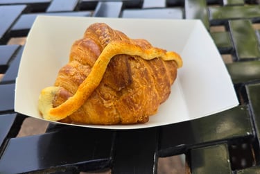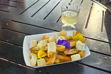 Since the festival was happening, we wanted to check out their offerings! We ended up getting the Provincial Poutine which had fries, cheese curds, honey, lavender, and edible flowers. It was delicious. We also had this croissant that was filled with cheese and that was also extremely tasty. Paired with a glass of wine and it was a great combination!