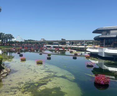 Our last stop at World Showcase was Canada, where we used to get ciders but they only offer those at specific times now. They also only do their Beer Cheese soup during Food & Wine festival which makes me sad, but it's still a great location to check out. They have a really cool waterfall in towards the back by Le Cellier, which I heard the food there is phenomenal. Compared to the other pavilions, I've always felt that Canada lacked a bit but they do offer some cool experiences like the Canda Far and Wide where it's a 360 degree look at the beauty of Canada. It's also a great place to cool down and get out of the heat.