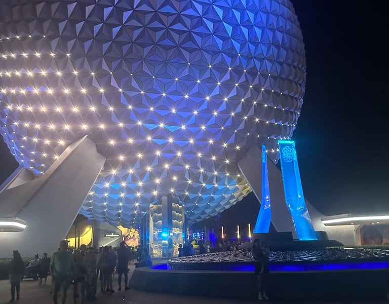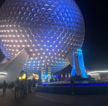Outside the world showcase there's plenty to see and do! We also tried some other offerings by the Imagination Pavilion and Connections. Some of which ended up being our favorite! Outside of connections, they had a live show of Encanto happening at multiple times as well as some dancing – which I did partake in! The walls have finally come down in this area and it is stunning when lit up at night. We tried the grilled street corn at Beach Grub and that was phenomenal as well as strawberry shortcake which was refreshing. Sadly, they didn't have the beer flight we were wanting to try but we did end up getting a light beer that was really tasty.