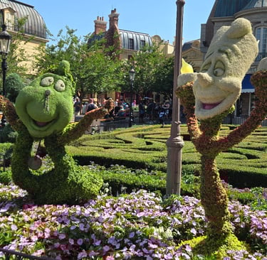 in each country and throughout EPCOT, there were so many character topiaries! Every year they try to do something a little different, but it's amazing what they can do with all of the flowers and greenery!