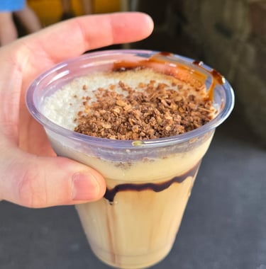 Next we headed to Norway to get our favorite drink in EPCOT, the Viking Coffee. If you have not had a chance to get this yourself when you are in EPCOT – do yourself a favor. It is delicious and if you are of age, order it with alcohol. It is a bit expensive but it is so worth it – and you can always split it if you want with someone else. But I won't blame you if you don't want to split it because it is that good. You can either get it hot or frozen, and frozen is definitely our go to. It has Bailey's Irish Cream Liqueur, Kamora Coffee Liqueur, frozen coffee with coffee-chocolate sauce and garnished with coffee-chocolate crunch.