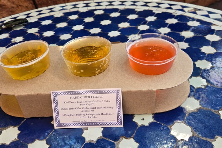 Morrocco is a hidden gem and I love to explore the area. They have a beautiful area called the Fez House where it really displays beautiful Morrocon architecture. I always make a point to walk through here because it's stunning. In this pavilion, they had a cider flight which was pretty good! We didn't try any food but they always have some great offerings over at their quick service locations as well as Spice Road Table, which is their sit down restaurant.
