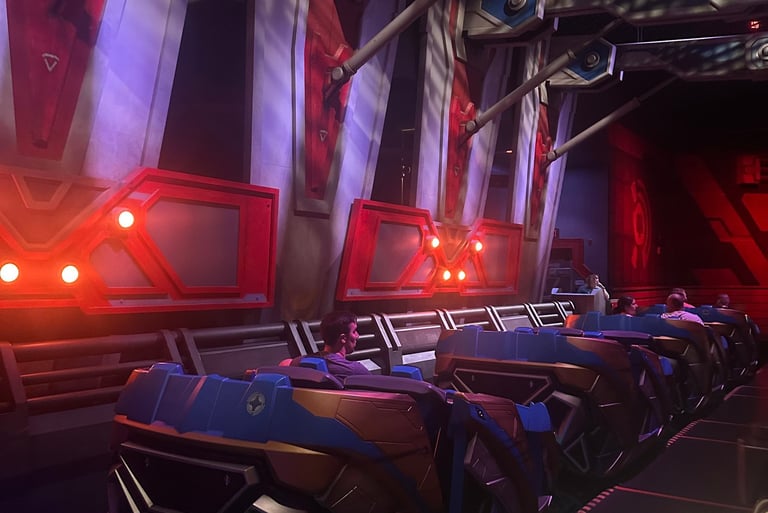 We decided to brave the crowds at rope drop in EPCOT and hit Guardians of the Galaxy Cosmic rewind first. That standby line before it opened was quite the experience, but one of the things Disney does really well is crowd control. Major shout out to those cast members – they not only made it fun, but they also made sure everyone was safe and reminded people not to run. (People still ran – but they got pulled aside by cast members if they saw it.) Honestly, it was worth it for us but we got there up towards the front of the line and didn't wait very long in the queue.